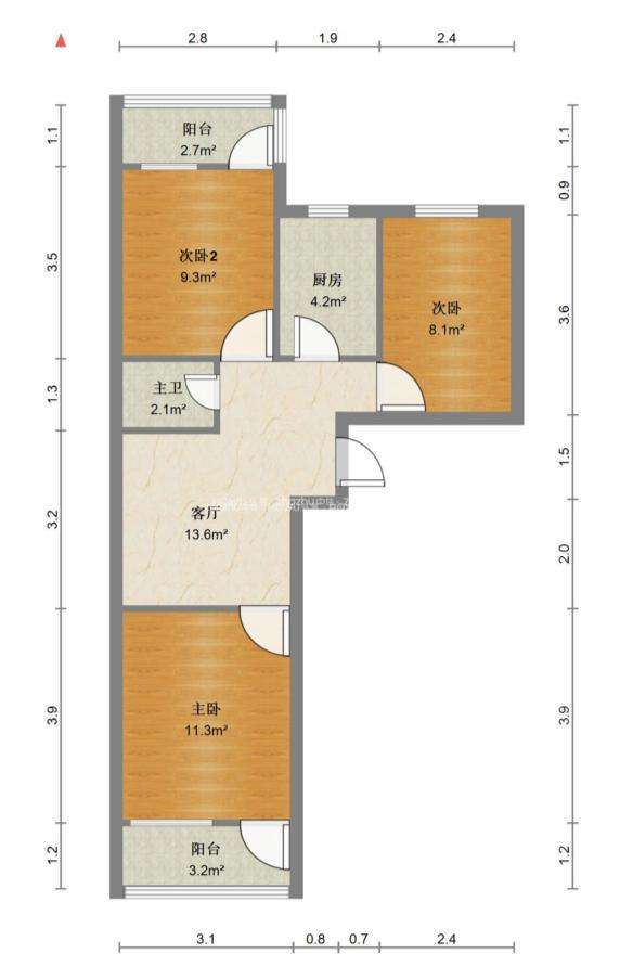 厅室3室1厅1卫2阳台