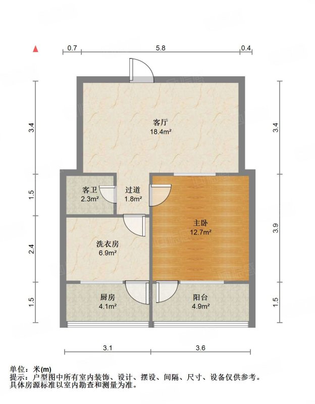 厅室1室2厅1卫1阳台