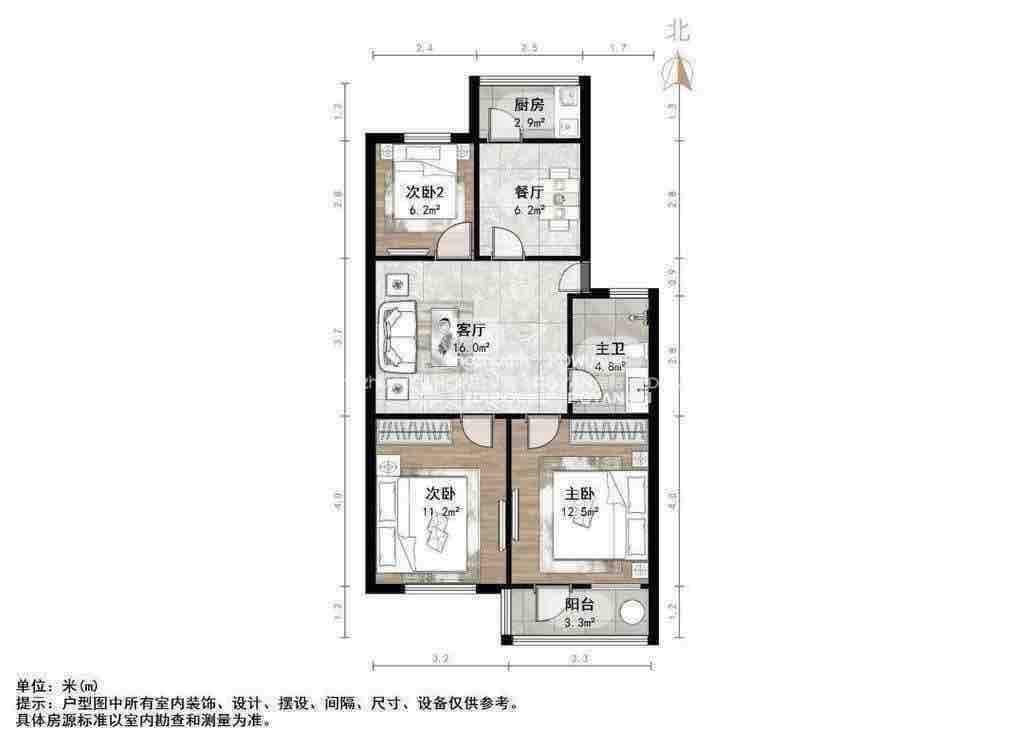 朝向南北 建筑面积80㎡