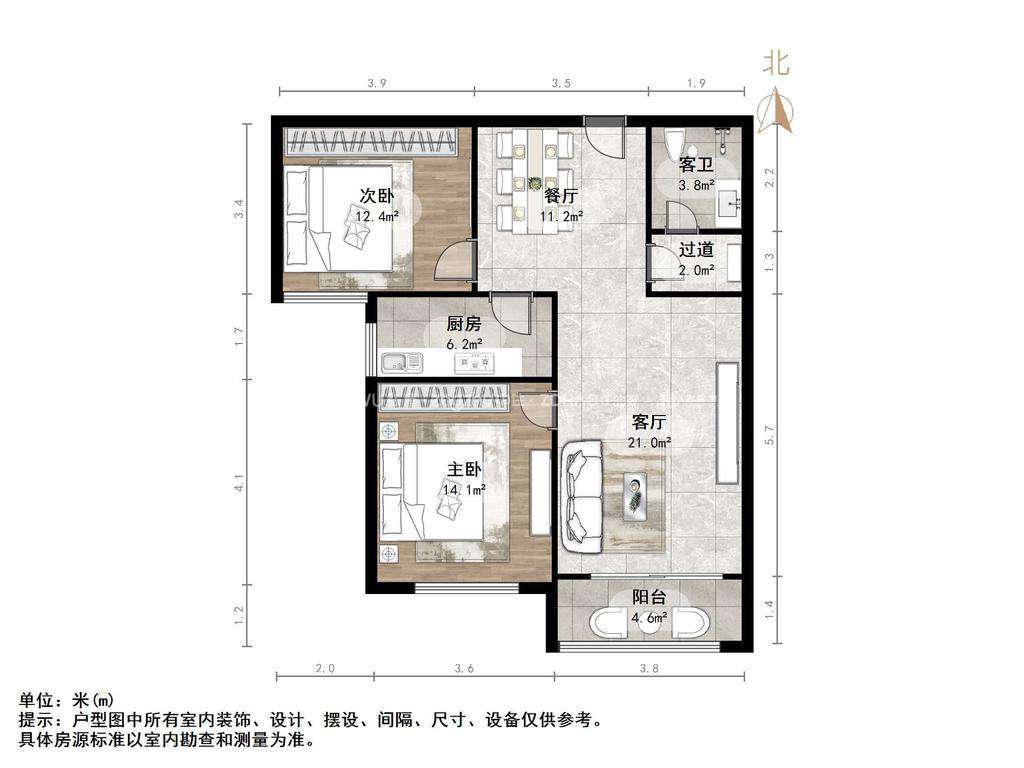 朝向南北 建筑面积88.73㎡