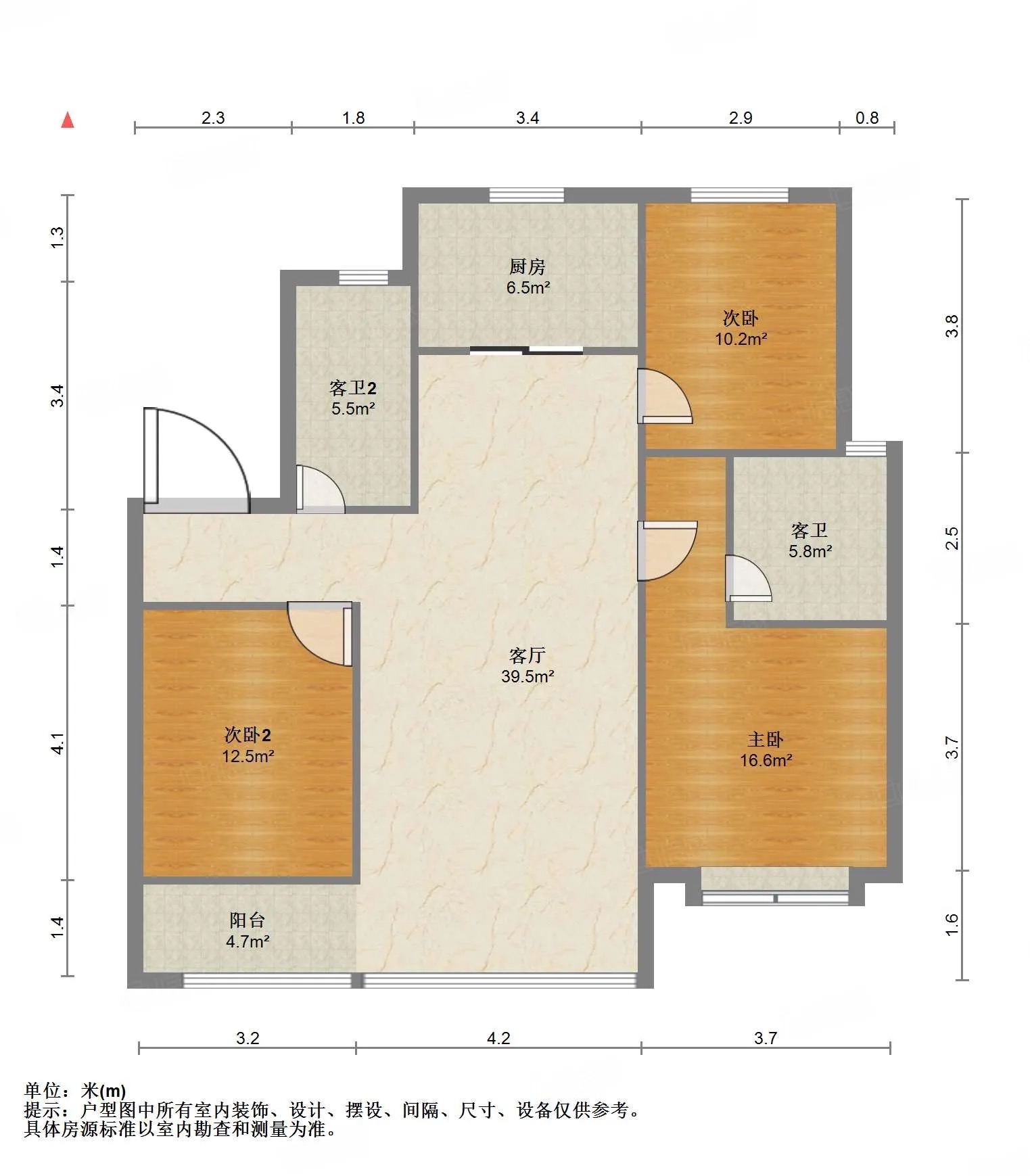 厅室3室2厅2卫1阳台