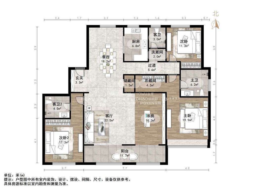 厅室3室2厅3卫1阳台