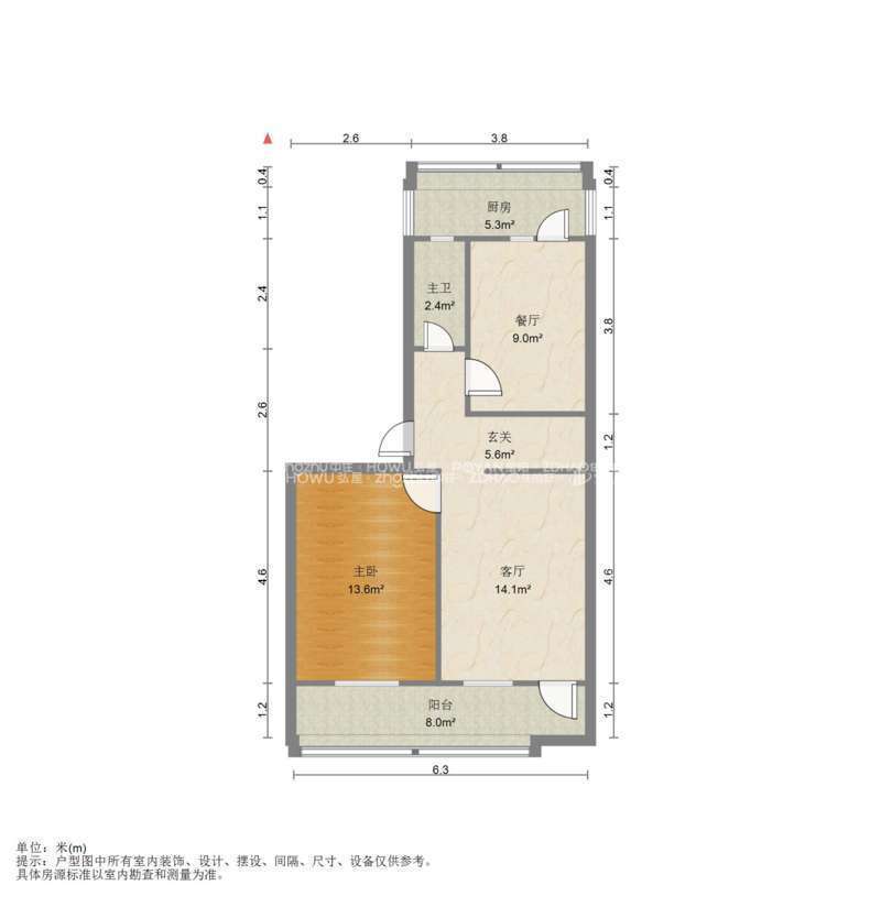厅室2室1厅1卫1阳台