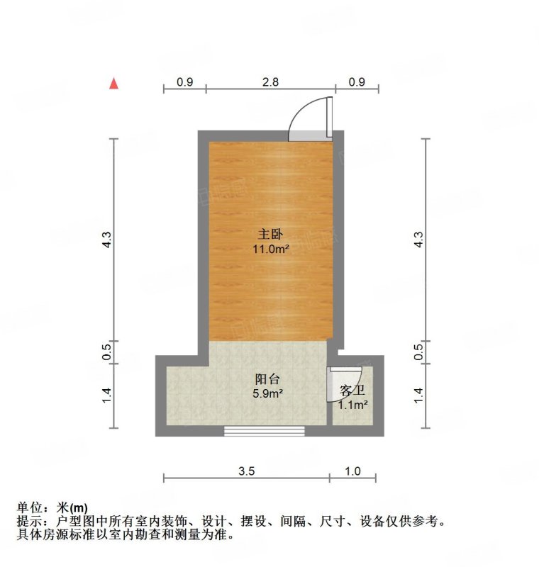 厅室1室1厅1卫1阳台