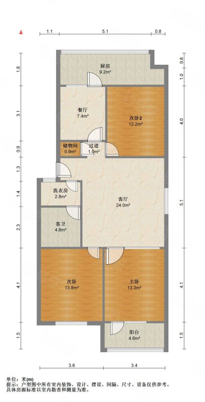 厅室3室2厅1卫1阳台