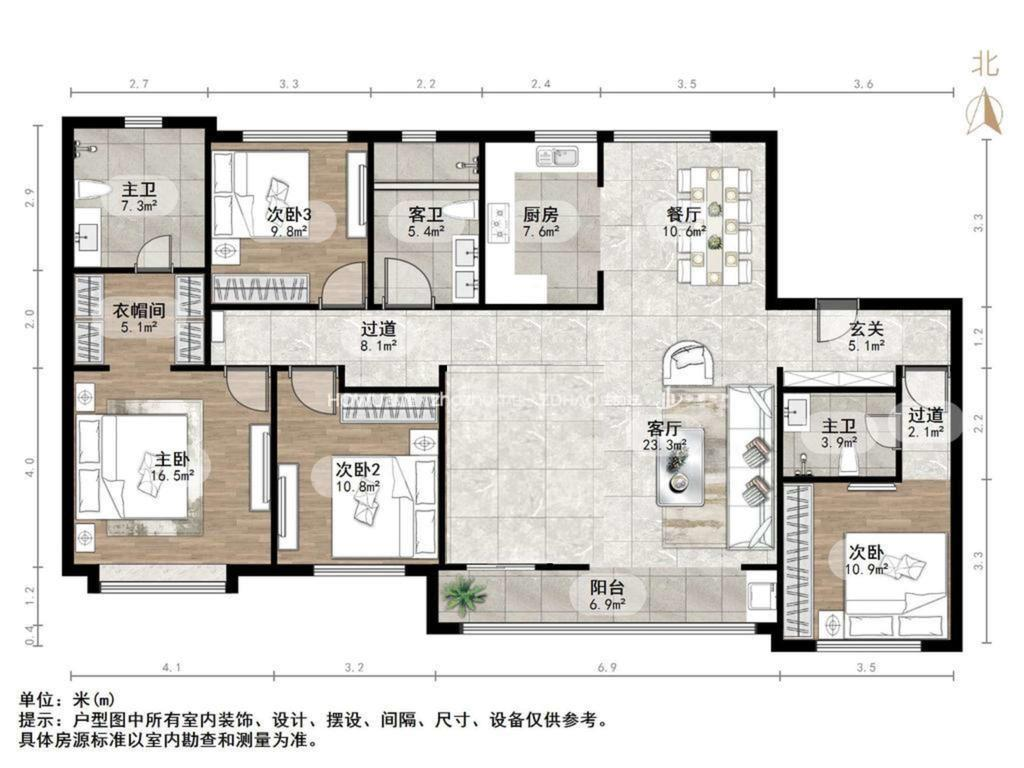 厅室4室2厅3卫1阳台