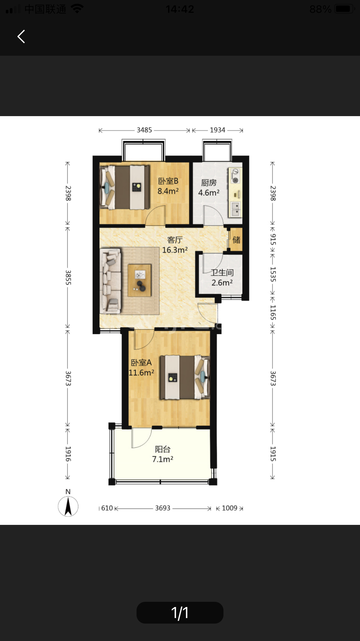 厅室2室1厅1卫1阳台