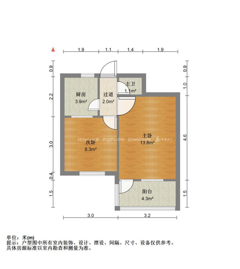 厅室2室1厅1卫1阳台