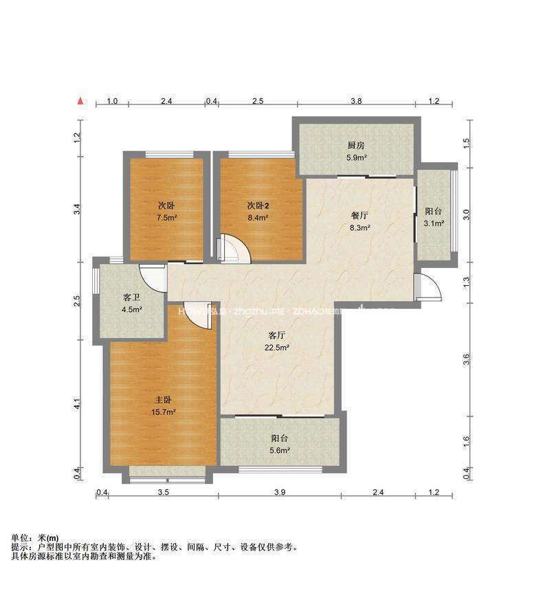 厅室3室2厅1卫2阳台