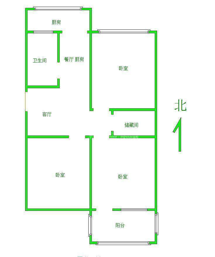 厅室3室1厅1卫1阳台