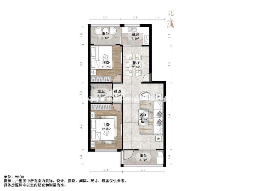 朝向南 建筑面积105㎡
