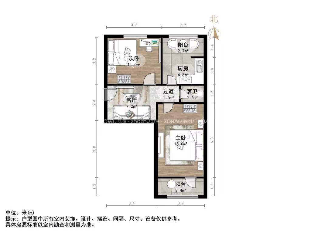 朝向南北 建筑面积68㎡