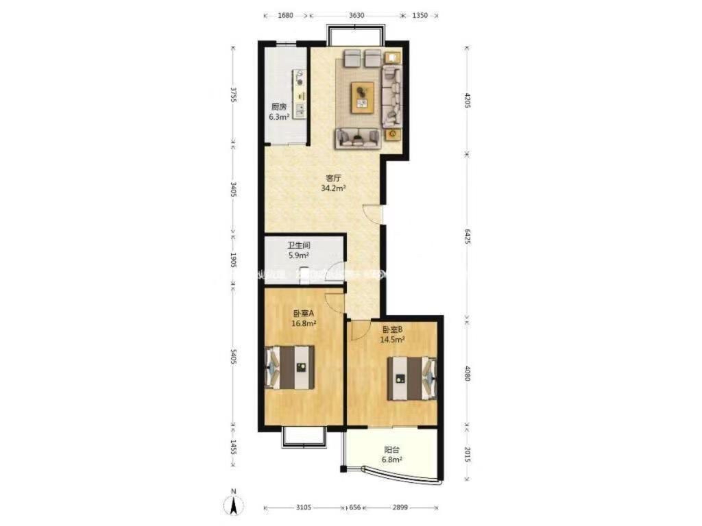 厅室2室2厅1卫1阳台