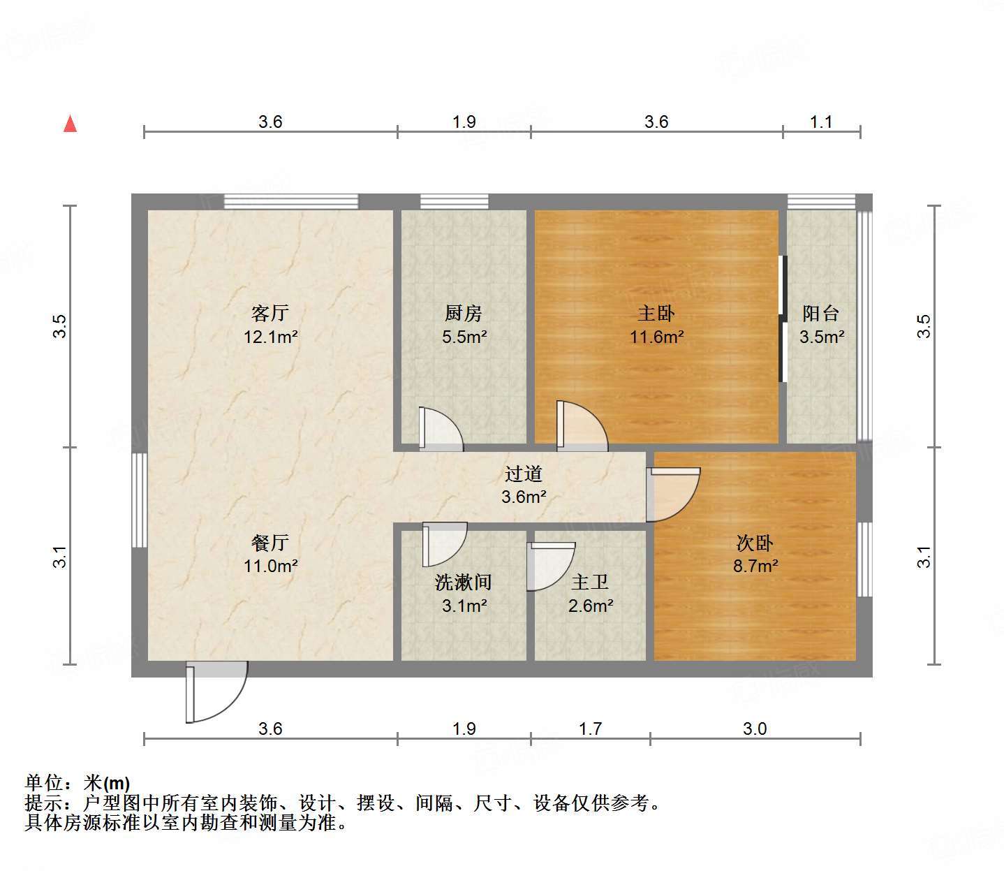 朝向南北 建筑面积83㎡