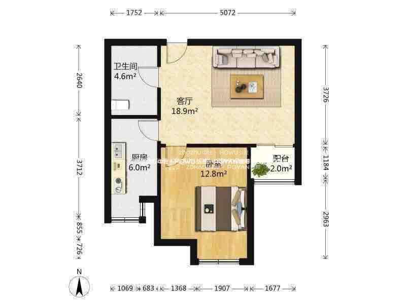 厅室1室2厅1卫0阳台