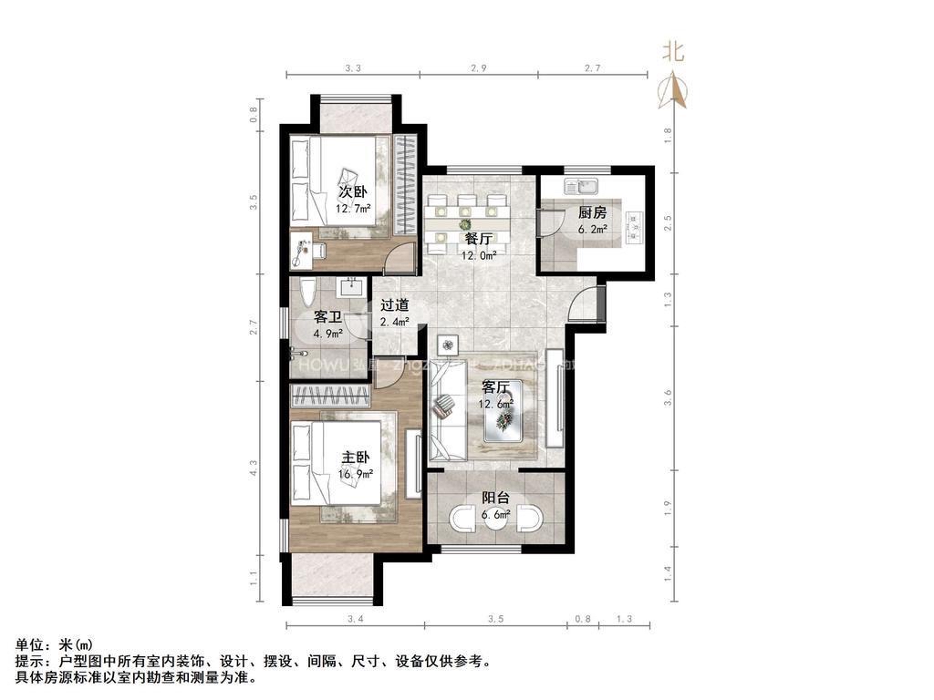 朝向南北 建筑面积91.91㎡