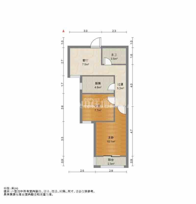 厅室2室1厅1卫1阳台