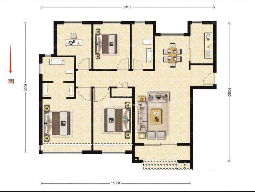 厅室4室2厅2卫1阳台