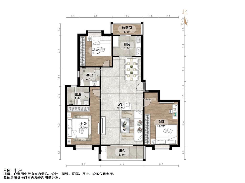 厅室3室2厅2卫1阳台