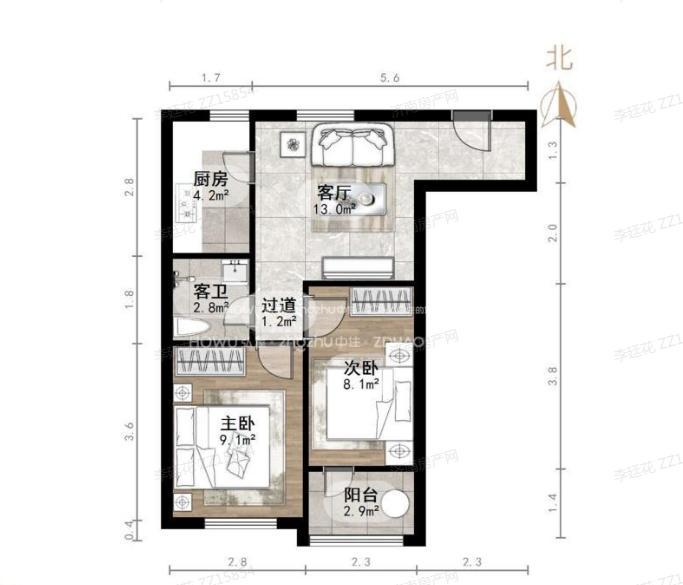 厅室2室1厅1卫1阳台