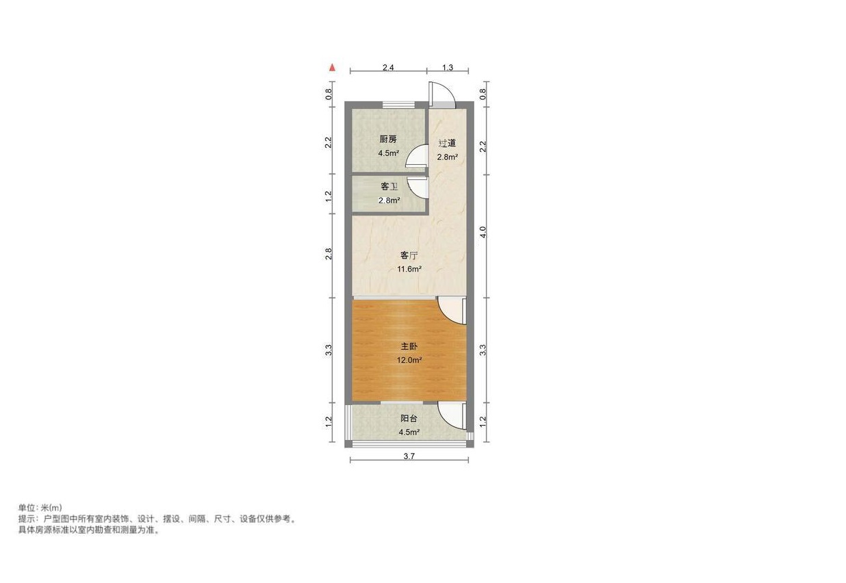 厅室1室1厅1卫1阳台