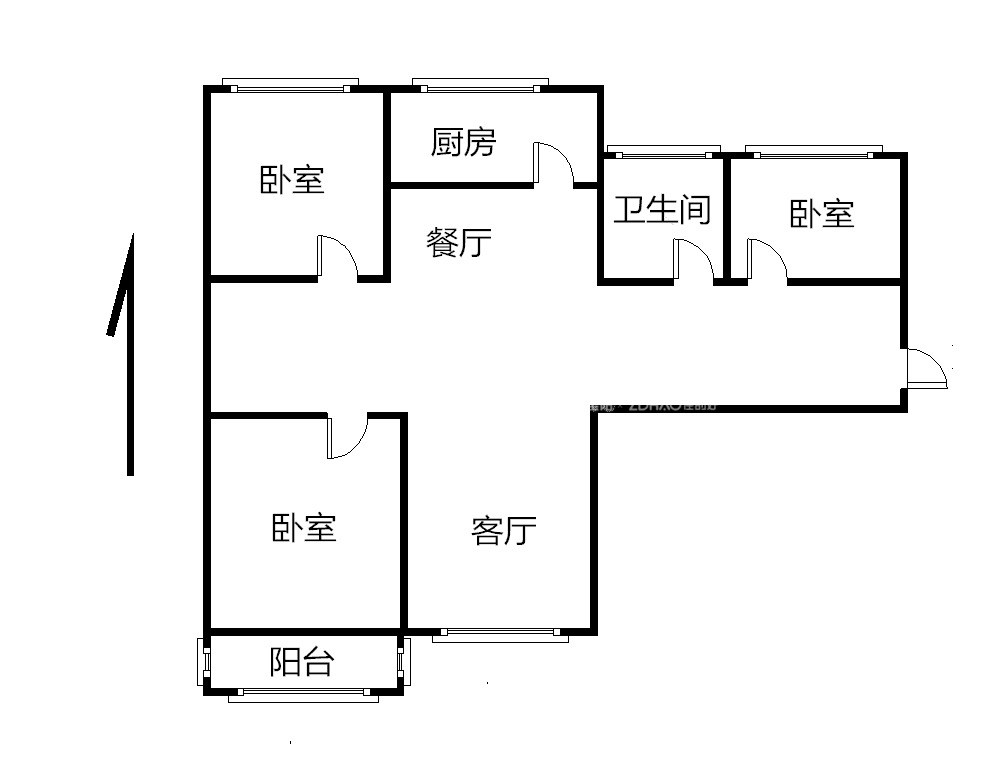 厅室3室2厅1卫1阳台