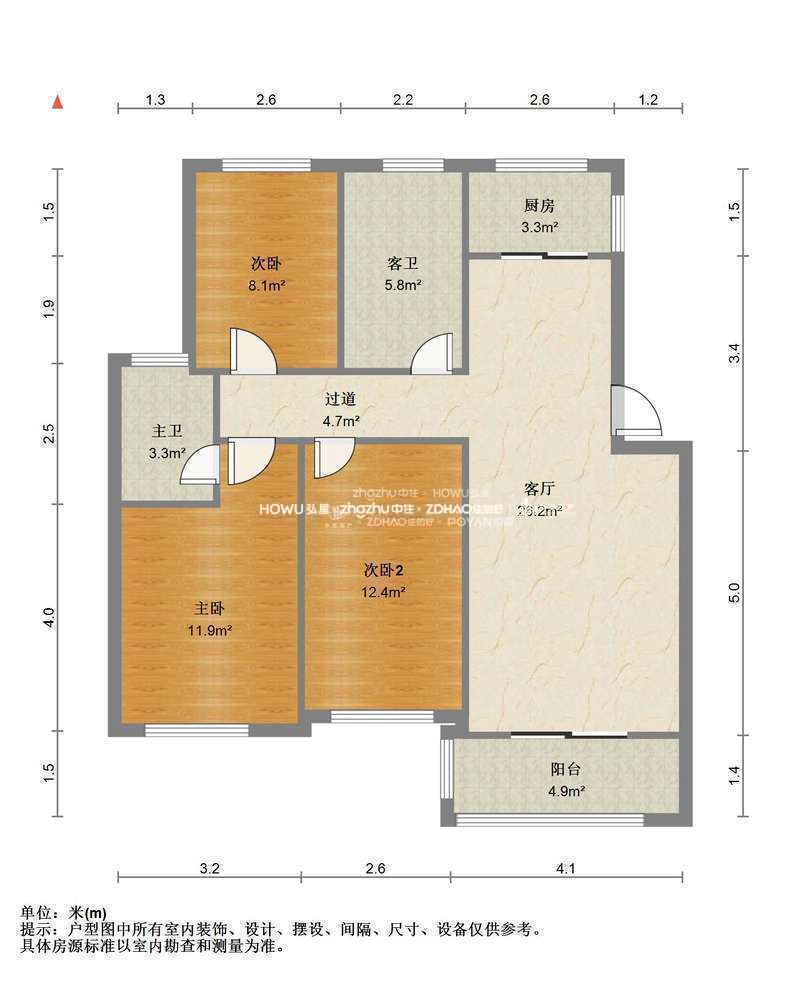 厅室3室2厅2卫2阳台
