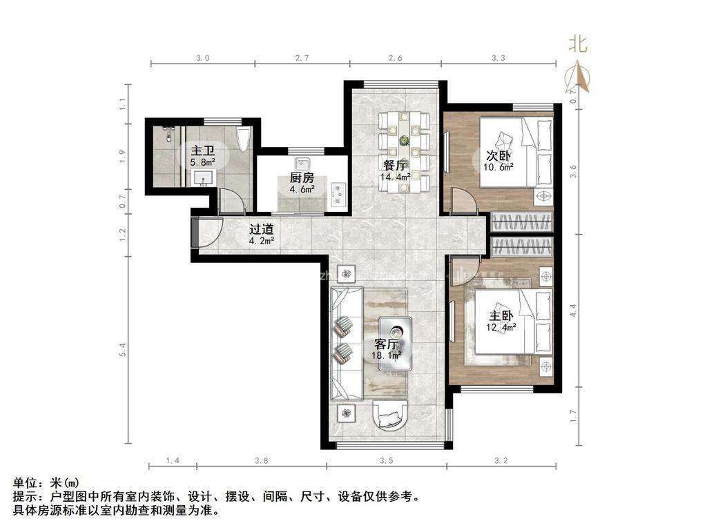 朝向南北 建筑面积98㎡