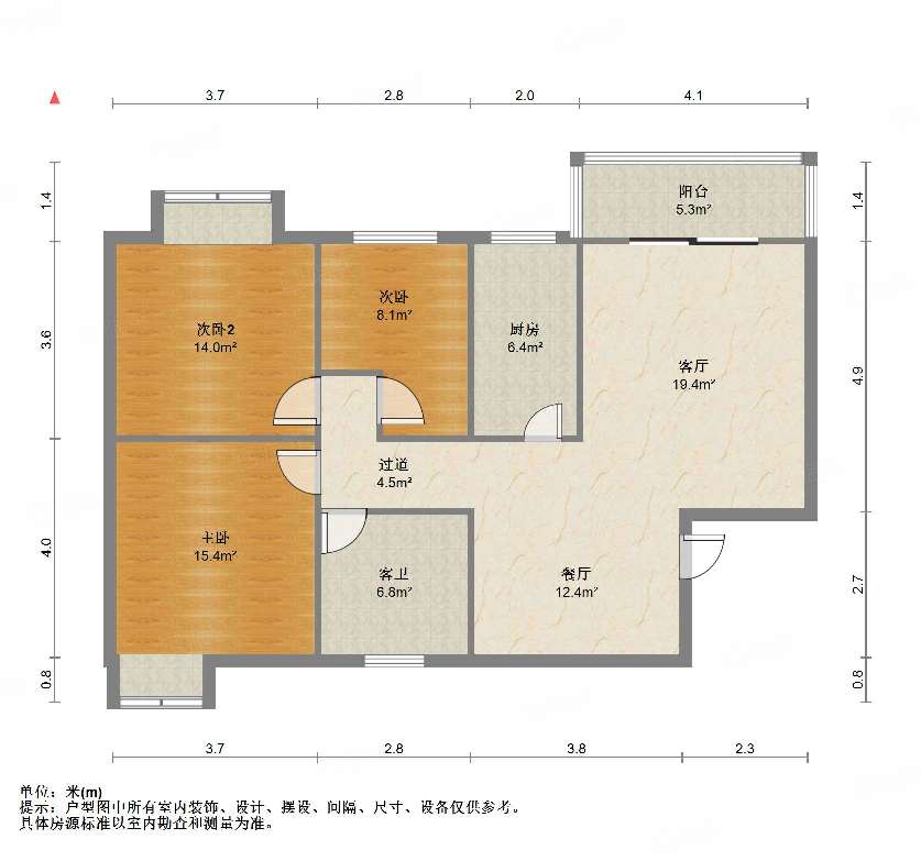 厅室3室2厅1卫1阳台