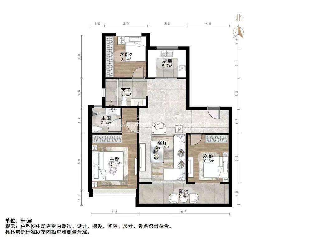 朝向南北 建筑面积110㎡