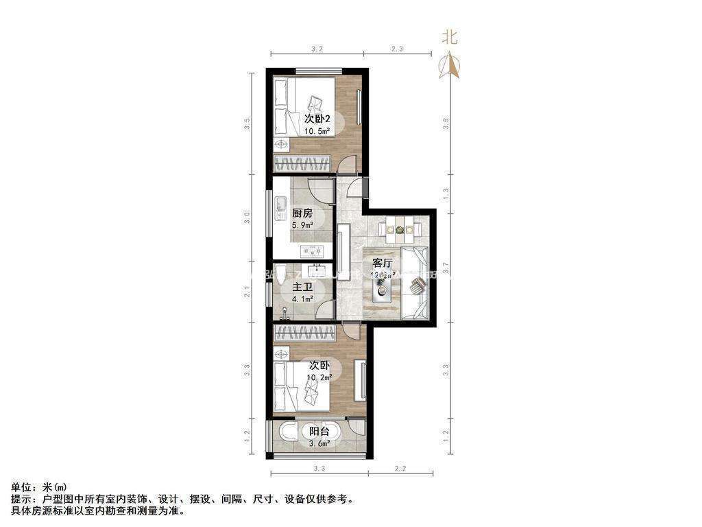 朝向南北 建筑面积65㎡
