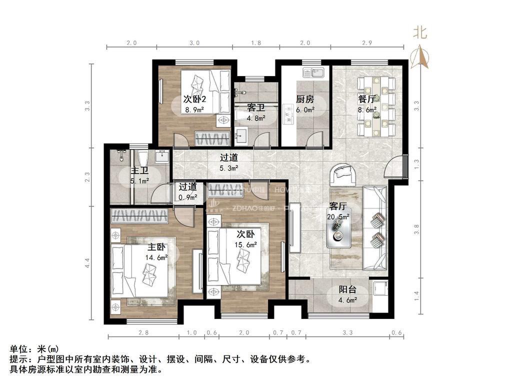 厅室3室2厅2卫1阳台