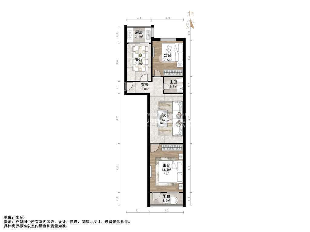 朝向南北 建筑面积73㎡