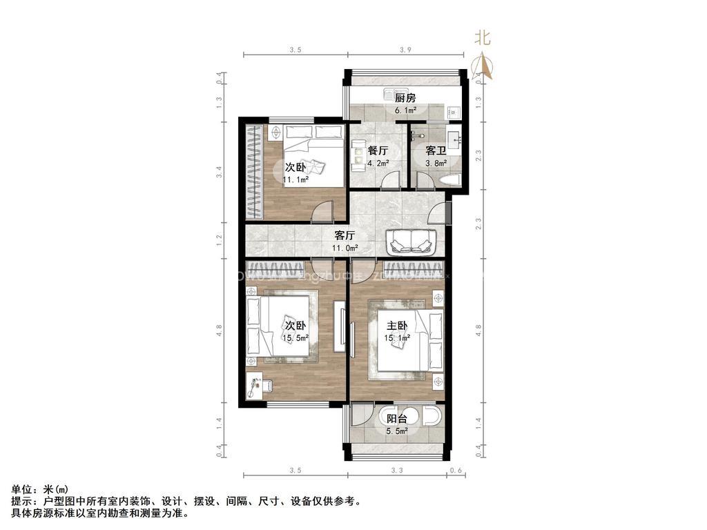 厅室3室1厅1卫1阳台