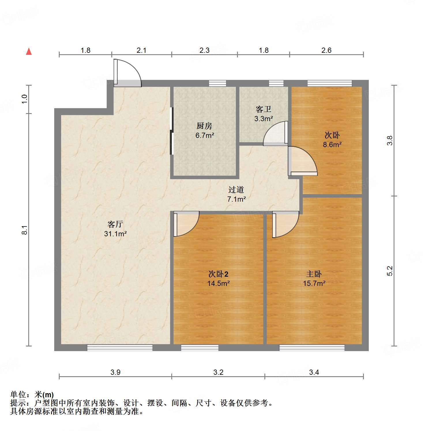 厅室3室2厅1卫1阳台