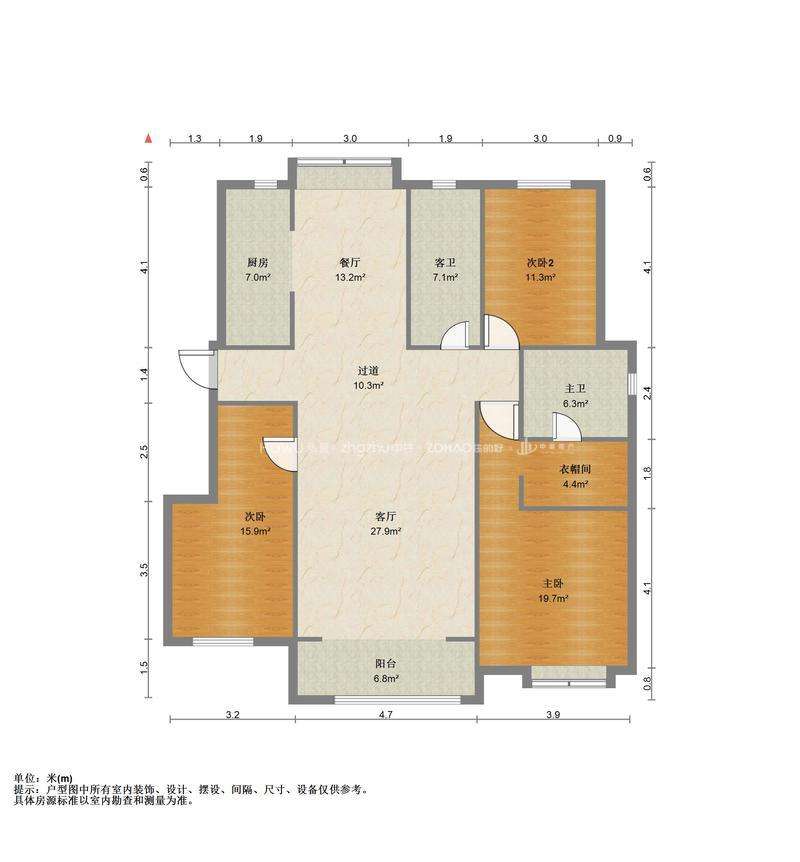 厅室3室2厅2卫2阳台