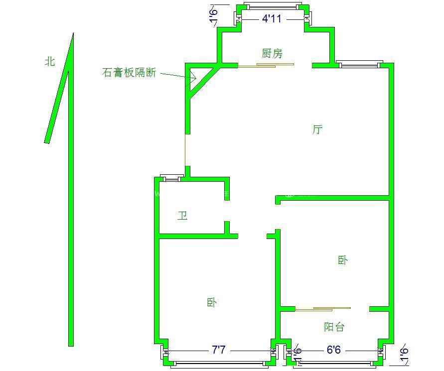 厅室2室1厅1卫1阳台
