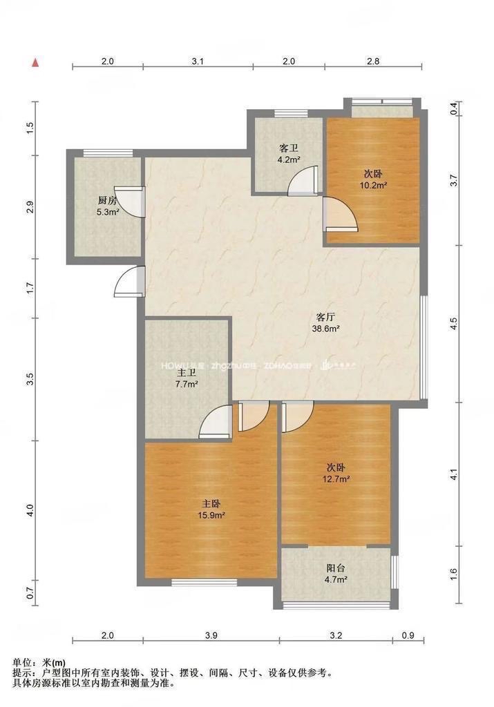 厅室3室2厅1卫0阳台