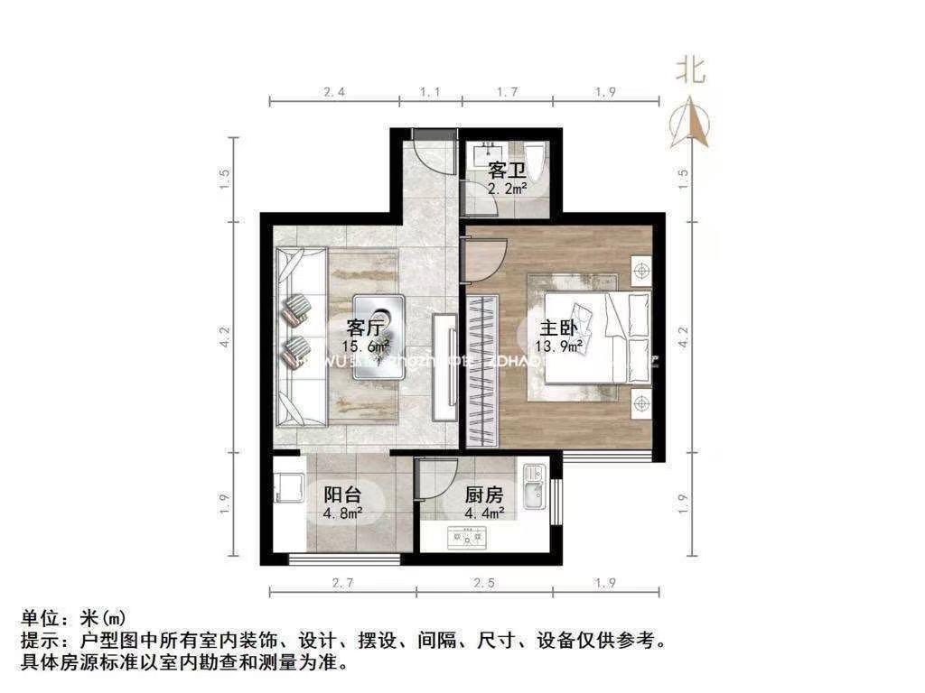 厅室1室1厅1卫1阳台