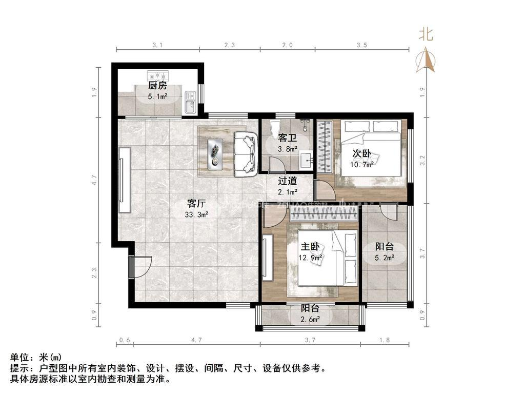 朝向南 建筑面积98.79㎡