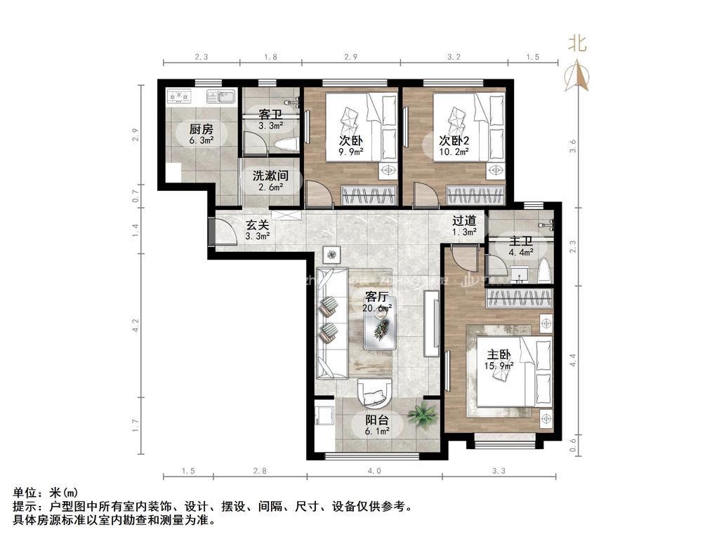 朝向南北 建筑面积113.05㎡