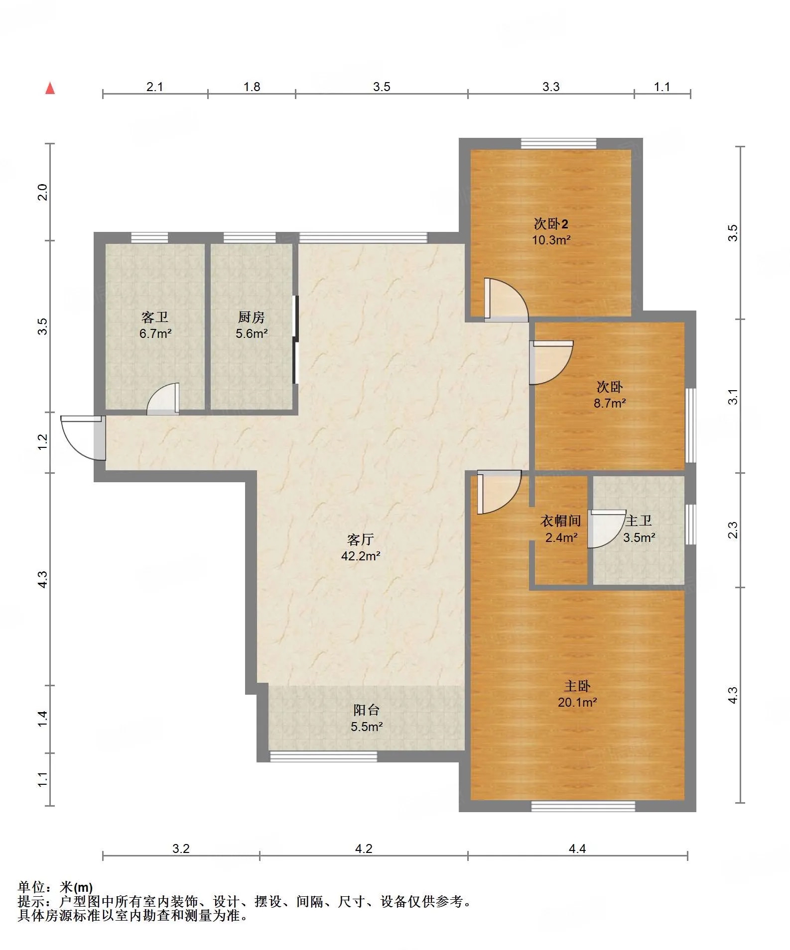 厅室3室2厅2卫1阳台