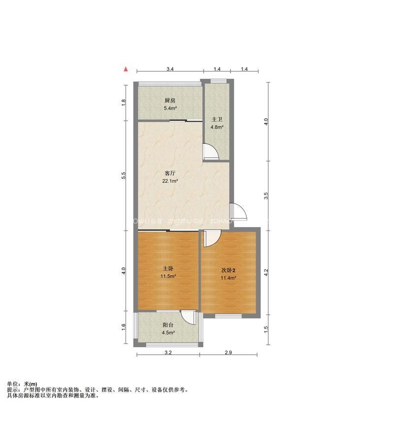 厅室2室1厅1卫1阳台