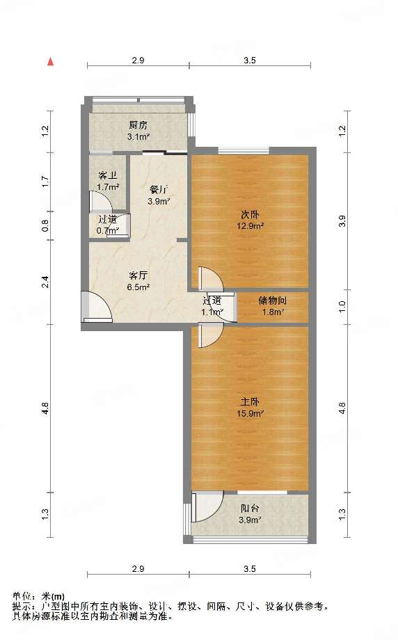 厅室2室1厅1卫1阳台