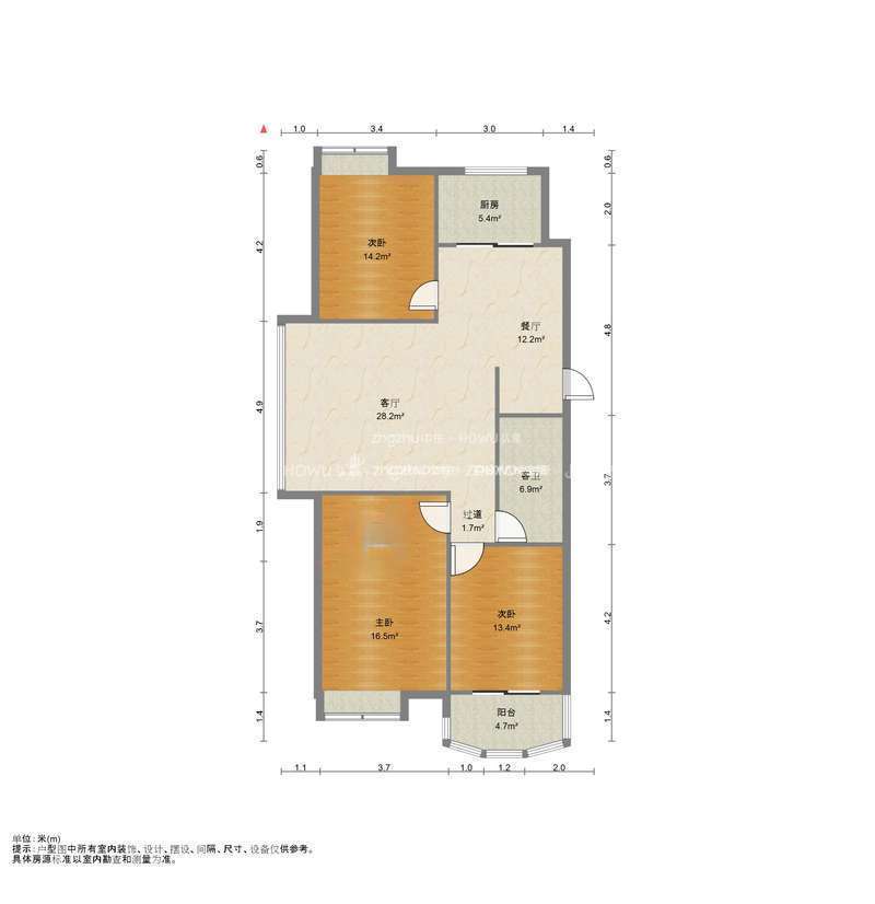 厅室3室2厅2卫1阳台