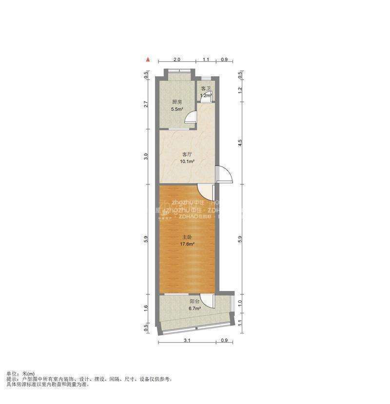 厅室1室1厅1卫1阳台