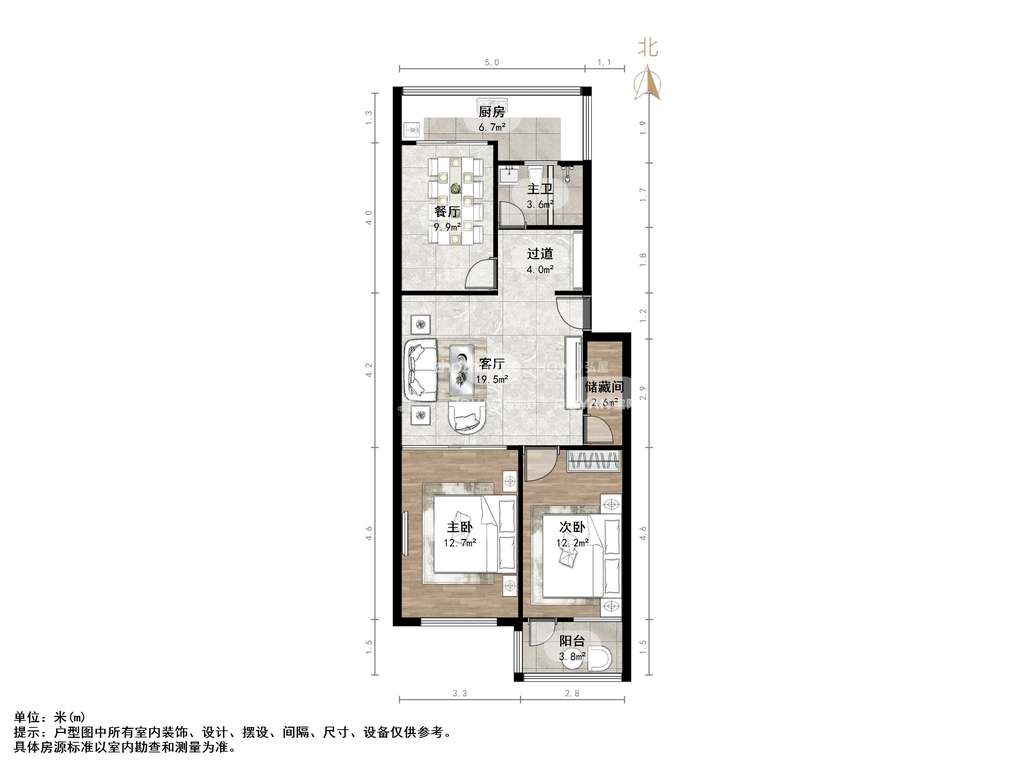 厅室3室2厅1卫1阳台