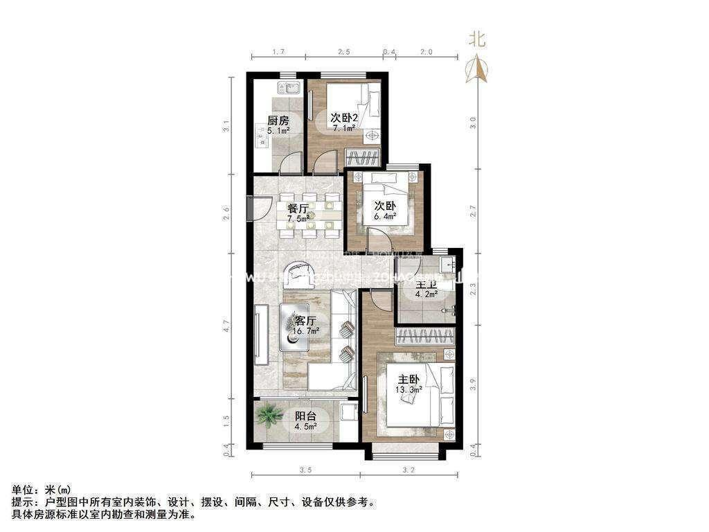 厅室3室2厅1卫1阳台