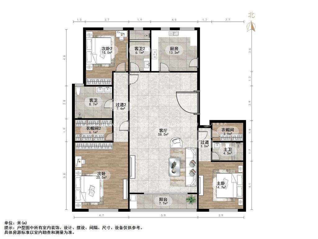 厅室3室2厅4卫1阳台
