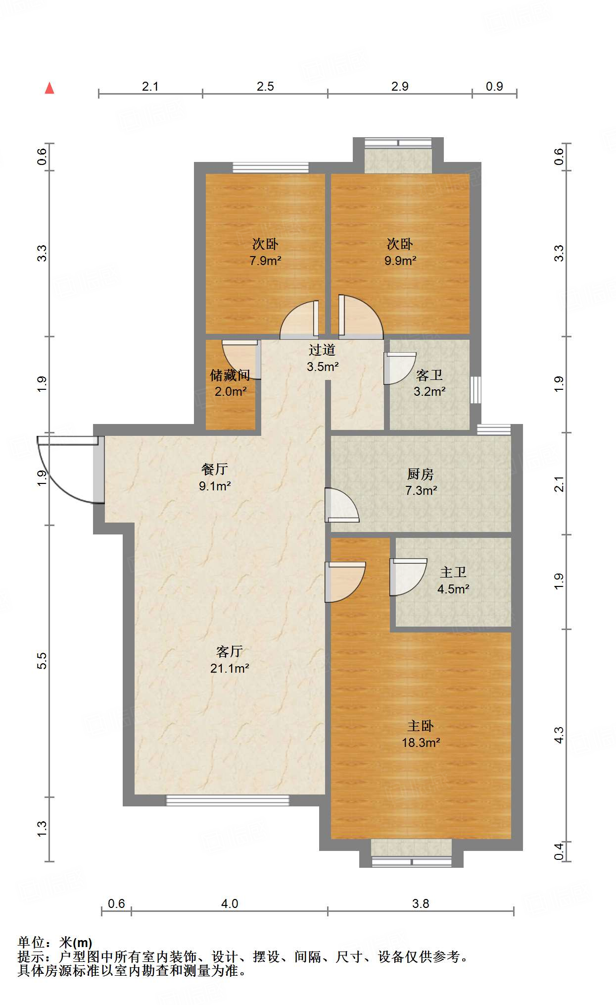 厅室3室2厅2卫1阳台